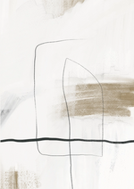 Een schilderij met een beige achtergrond met daarop vervaagde strepen en vegen.