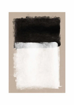 Een beige Schilderij met de kleuren Zwart en Wit duidelijk geschilderd.
