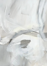 Een schilderij met hele lichte verfstrepen, wat een mooi en rustgevend beeld geeft.