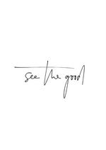 Dit minimalistische schilderij draagt de boodschap "Zie het goede", geschreven in vloeiend, cursief handschrift, perfect gecentreerd op een heldere, witte achtergrond. Een herinnering aan positiviteit in stijlvolle eenvoud.