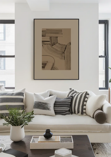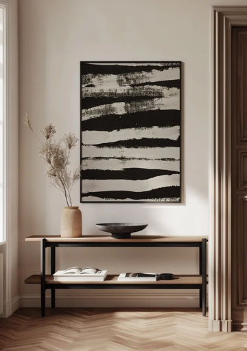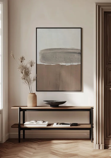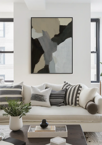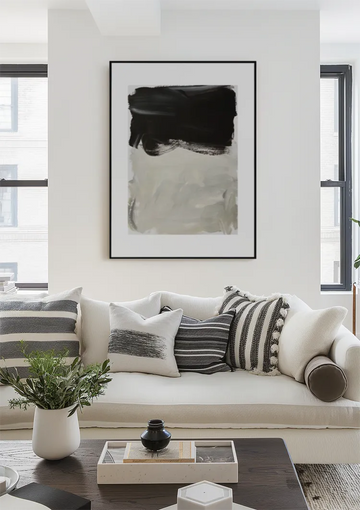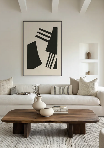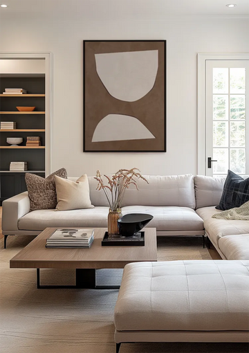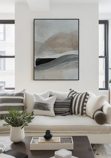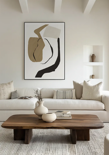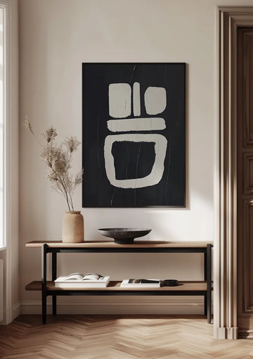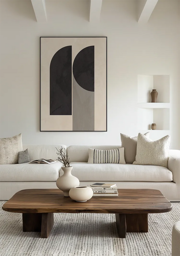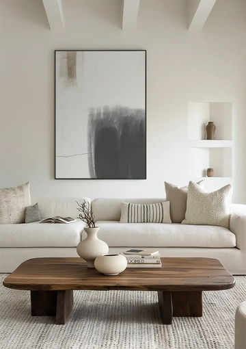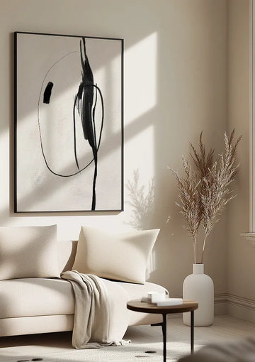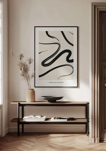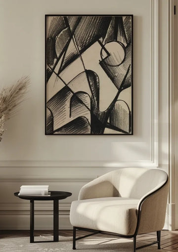 • Minimalistisch Abstract: Minimalisme benadrukt eenvoud en monochromatie, met de focus op de essentie van vorm en kleur. Deze stijl gebruikt vaak weinig elementen om een sterke visuele impact te creëren, ideaal voor moderne en minimalistische interieurs.