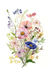 Dit schilderij toont een aquarel schilderij van een levendig boeket van verschillende bloemen in een donkerblauwe vaas.
