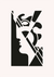 Een zwart-wit schilderij met zwarte vakken, die zo een gezicht vormen.