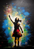 Dit schilderij toont een bakstenen muur met een silhouet van een meisje dat een sterretje vasthoudt.