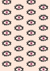 Dit abstracte schilderij toont een patroon van gestileerde ogen met roze irissen en zwarte pupillen, uitgelijnd in rijen op een lichtroze achtergrond. Elk oog wordt omlijst door zwarte wimpers in een radiaal ontwerp.