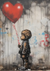 Een schilderij met een realistische afbeelding van een jongetje met een ballon in de vorm van een hart.