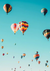 Een schilderij van de lucht waarin meerdere luchtballonnen aanwezig zijn.
