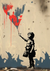 Dit schilderij toont een kind met een kleurrijke vlieger in de hand.
