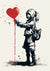 Dit schilderij toont een meisje dat een rode ballon in de vorm van een hart vasthoudt,