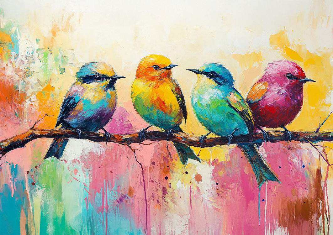 Waarom je kiest voor Kleurrijke Vogels Schilderij op canvas