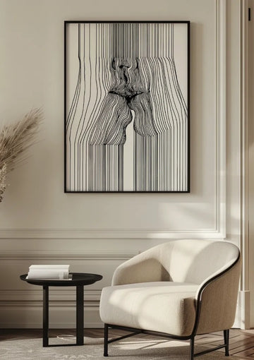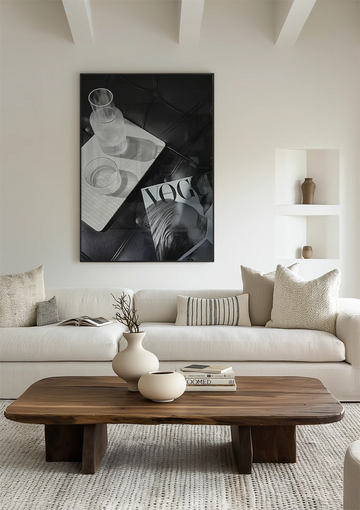 Zwart-wit kunst werkt geweldig in minimalistische ruimtes als een sterk visueel middelpunt. Het creëert een schone en strakke look die rust en eenvoud uitstraalt. De monochrome kleuren passen perfect bij een minimalistische esthetiek en voegen een element van verfijning toe zonder de ruimte te overweldigen.