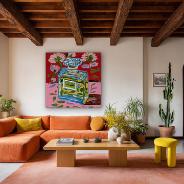 - In de woonkamer: Een groot bloemen schilderij kan het middelpunt van je woonkamer zijn, en kleur en levendigheid toevoegen.