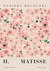 Een in vintage-stijl schilderij met de titel "Papiers Découpés" van H. Matiss, met een bloemmotief van roze en groen op een gebroken witte achtergrond.