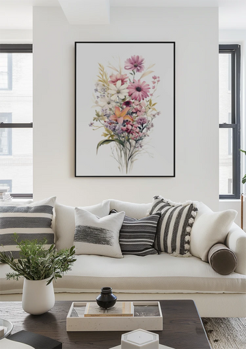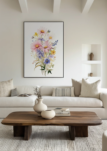 • In de woonkamer: Een groot bloemen schilderij kan het middelpunt van je woonkamer zijn, en kleur en levendigheid toevoegen.