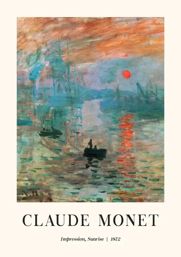 Dit prachtige schilderij van Claude Monet, "Impression, Sunrise", vangt de betoverende sfeer van een zachte zonsopgang boven een levendige haven, waar de boten op het kalme water dansen en de oranje zon haar gloed weerspiegelt. Met losse penseelstreken en rijke kleuren wordt de scene op een meesterlijke impressionistische wijze tot leven gebracht.