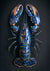 In dit schilderij staat een prachtige kreeft centraal, met een unieke blauwe schelp en verfijnde gouden details, tegen een diepe, donkere achtergrond.