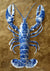 Dit schilderij toont een blauwe en witte kreeftillustratie op een gouden en bruine gestructureerde achtergrond, met gedetailleerde markeringen en texturen.