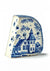 Schilderij van een porseleinen stukje kaas met een illustratie van een huis met toren en omliggend landschap.
