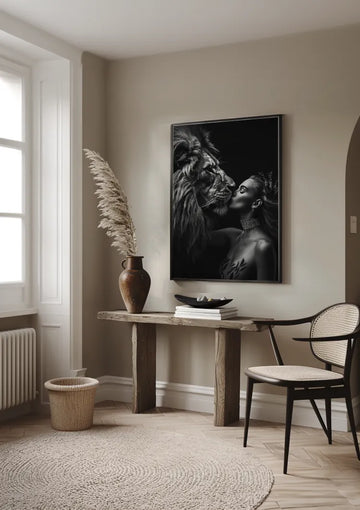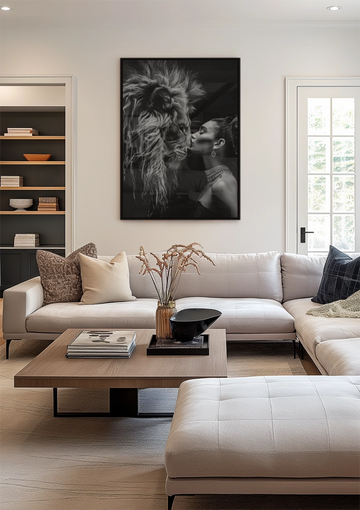 Verbondenheid in Met Leeuw In Zwart-Wit Schilderij