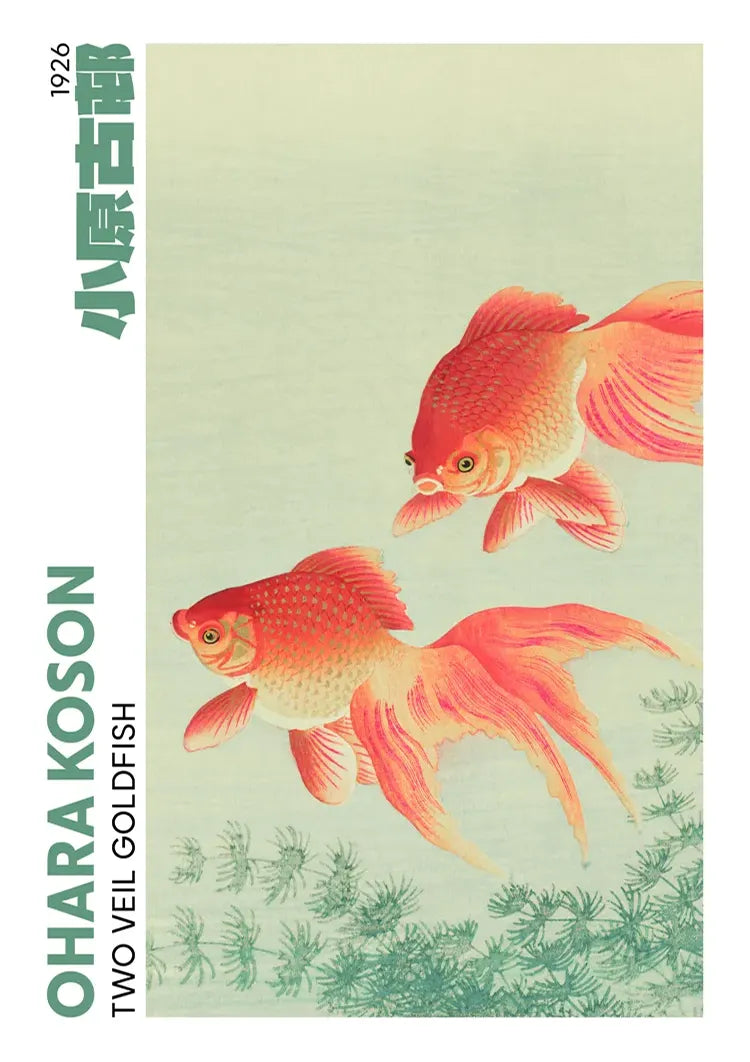 Waarom je kiest voor O. Koson Two Veil Goldfish Schilderij op Tuinposter
