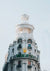 Dit schilderij toont een hoog, sierlijk wit gebouw, bekroond met een cilindrische toren en omgeven door decoratieve balkons.