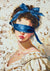 Een klassiek ogend portret met een opvallende blauwe blinddoek, spelend met thema’s van schoonheid en beperking.
