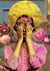 Een gezicht, opgebouwd uit krantenpapier, dat nieuwsgierig de wereld inkijkt.