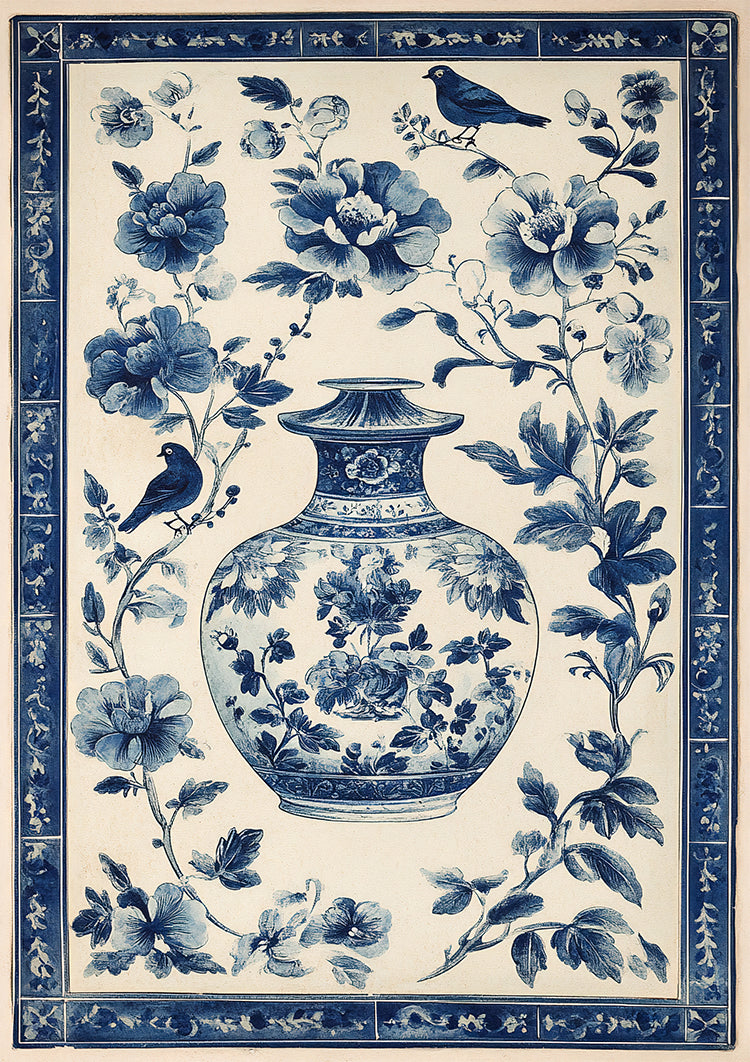 Delfts Blauw Vaas Met Bloemen Ontwerp Schilderij