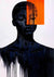 Een donker gezicht met een oranje vlak over de ogen, als metafoor voor identiteit en waarneming.