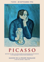 Dit schilderij toont het poster voor een Picasso-tentoonstelling die werd gehouden van 9 juni tot 28 september 1954. De poster toont een schilderij van een persoon die met zijn rechterhand op zijn gezicht zit en met zijn linkerhand een glas vasthoudt.