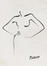 Dit Picasso-schilderij kenmerkt zich door een minimalistisch ontwerp, met een enkele doorlopende lijn die het abstracte lichaam van een vrouw weergeeft, een tijdloos stuk voor een eigentijdse ruimte.