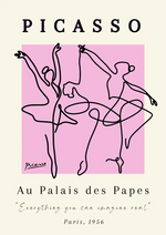 Dit schilderij toont lijntekeningen van balletdansers tegen een roze achtergrond, wat een gracieuze en levendige uitstraling geeft aan de afbeelding.