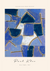 Dit schilderij bevat geometrische vormen in verschillende tinten blauw, wit en zwart.