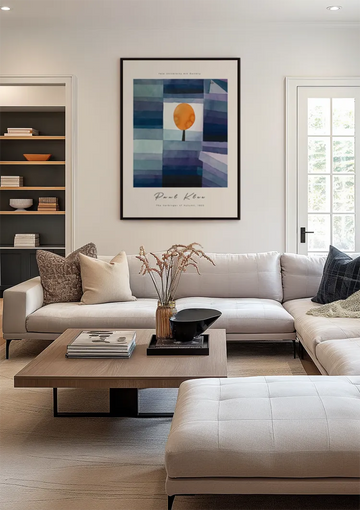 - Kunst boven de bank? Ga voor een breedte van minimaal 100 cm. Dit kan één groot werk zijn, of een combinatie van twee of drie kleinere werken naast elkaar.