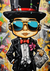 Dit schilderij toont een jonge man in een zwart pak en hoge hoed, met een zonnebril en een krant in zijn hand.