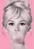 Dit schilderij toont een vrouw met een trendy kapsel die een grote kauwgombel blaast, met een roze achtergrond die haar speelsheid benadrukt.