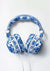 Dit schilderij toont een hoofdtelefoon met een blauw en wit bloemmotief. De hoofdtelefoon is voorzien van zachte oorkussens en een hoofdband met dezelfde bloemenprint.