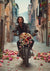 In dit schilderij zie je John Wick op zijn motorfiets, omringd door kleurrijke bloemen, een krachtig en levendig beeld dat zijn stoere karakter perfect weergeeft.