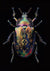 Dit schilderij toont een kever met een glanzend, veelkleurig exoskelet. Het ingewikkelde ontwerp omvat veelkleurige accenten en merkmotieven op de achterkant, waardoor het een echte blikvanger is.