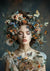 Dit schilderij toont een vrouw met gesloten ogen, omringd door een uitgebreid hoofddeksel van bloemen en vlinders. Haar krullende haar vormt een aanvulling op de natuurlijke elementen, terwijl vlinders op haar gezicht, haar en schouders rusten.