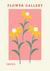 Dit schilderij vangt een illustratie van drie eenvoudige, gestileerde madeliefjes met gele bloemblaadjes en groene stengels, op een zachte roze achtergrond. Een charmante toevoeging aan elke ruimte!