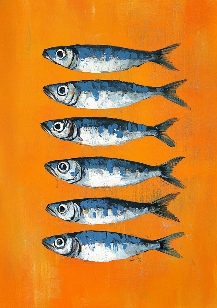 Waarom je kiest voor Oranje Sardine Parade Schilderij op canvas