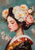 Een vrouw met gesloten ogen draagt een kroon van bloemen, waarbij zachte tinten en details een kalme, introspectieve sfeer oproepen.