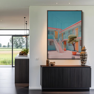 Geen gedoe meer met boren! Met ons slimme ophangsysteem kun je je nieuwe schilderij eenvoudig ophangen zonder je muren te beschadigen. Het is niet alleen super gebruiksvriendelijk, maar je kunt je kunstwerk ook makkelijk verplaatsen wanneer je zin hebt in iets nieuws aan de muur.