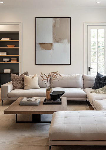 • Kunst boven de bank? Ga voor een breedte van minimaal 100 cm. Dit kan één groot werk zijn, of een combinatie van twee of drie kleinere werken naast elkaar.