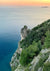 Dit schilderij met een klifwand die is bedekt met dicht groen en leidt naar een kalme blauwe zee.