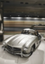 Dit schilderij toont een klassieke zilveren Mercedes SL300 geparkeerd in een moderne gang, met een bewegingsonscherpe achtergrond die snelheid en beweging suggereert, wat het strakke, vintage ontwerp van de auto benadrukt.