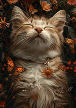 Waarom je kiest voor Fluffy Cat Resting Among Flowers Schilderij op posters