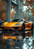 Dit schilderij toont een prachtige oranje sportwagen, geparkeerd met een glossy lak en een aerodynamisch ontwerp.