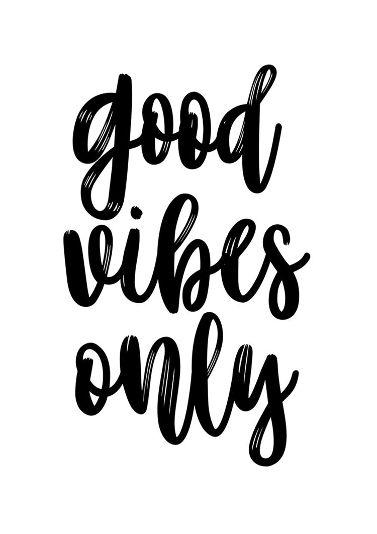 Dit vrolijke schilderij met de tekst "Good vibes only" in een ontspannen, vloeiend handschrift, brengt een positieve sfeer in elke ruimte. Een stijlvolle herinnering aan optimisme en goedheid.